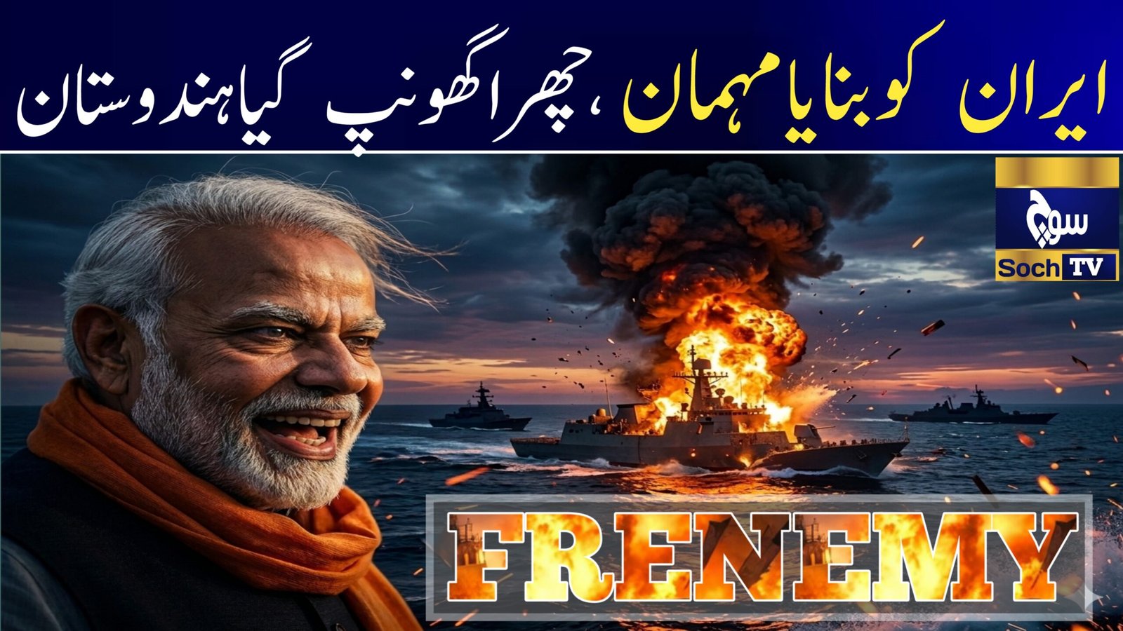 چارمارچ 2026 کو بحرِ ہند میں پیش آنے والے ایک غیر معمولی بحری واقعے نے عالمی سطح پر توجہ حاصل کر لی۔ ایران کا جدید جنگی جہازآئرس ڈینا اچانک ایک زور دار دھماکے کے بعد آگ اور دھوئیں میں گھِر گیا اور چند ہی لمحوں میں شدید نقصان کا شکار ہو گیا۔